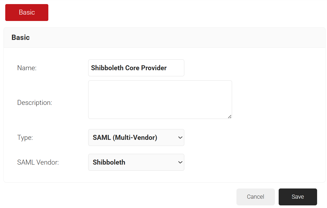 - From the SAML Vendor drop-down list, select Shibboleth.