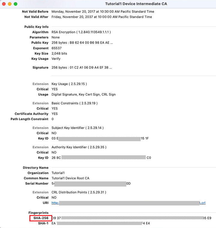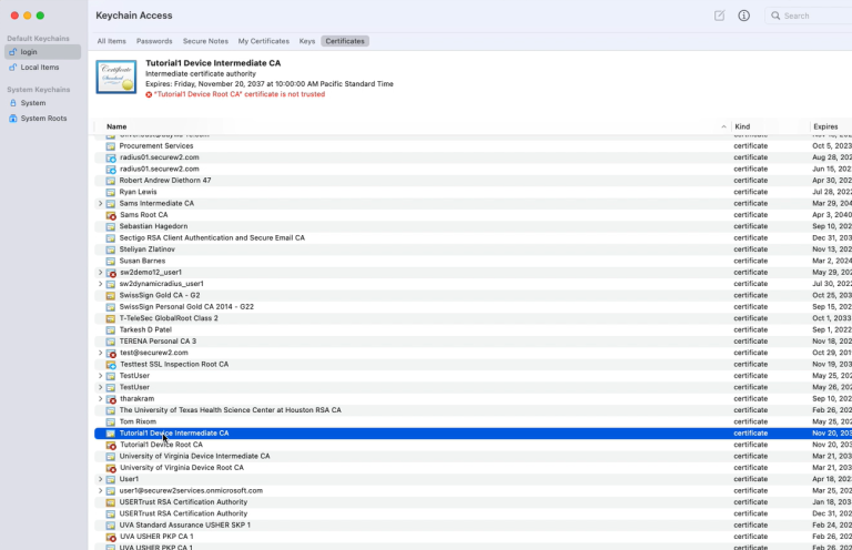 - In the keychain Access dialog box, under the Certificates tab, open the Intermediate CA certificate created earlier.