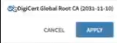 - In the Trust section, select the DigiCert Global Root CA checkbox from the Trusted Certificates drop-down list, and then click APPLY.