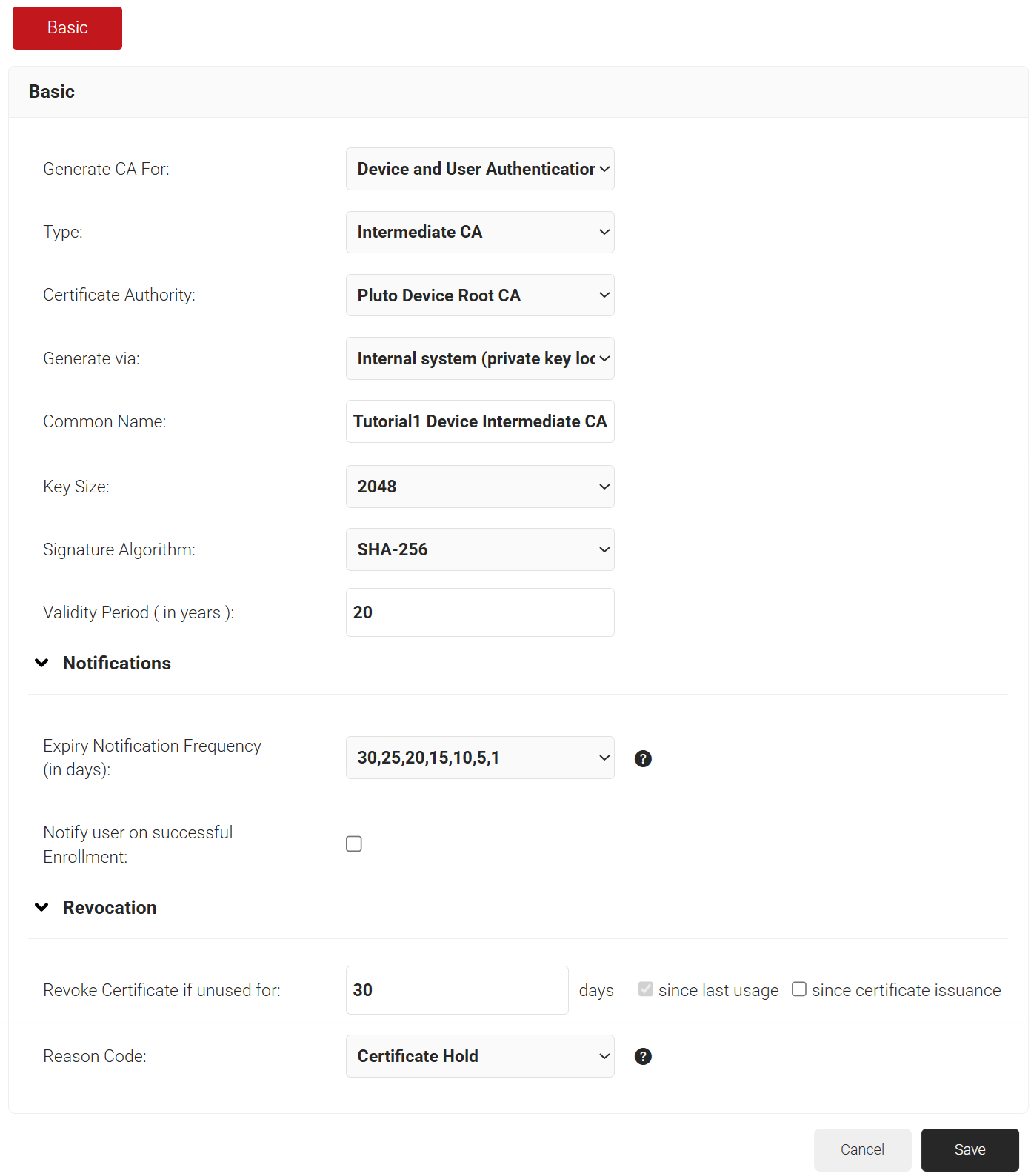 - In the Basic section, from the Generate CA For drop-down list, select Device and User