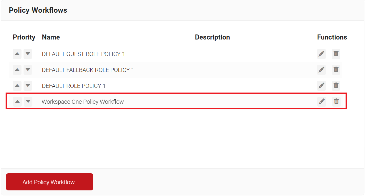 The Policy Workflow is where you can specify your Core Provider. Device Management Platform, which in this case is Workspace ONE, and attributes (like groups) that you want to be tied to a specific role. Then, this role can be used to trigger a Certificate Enrollment policy or a Network Policy.