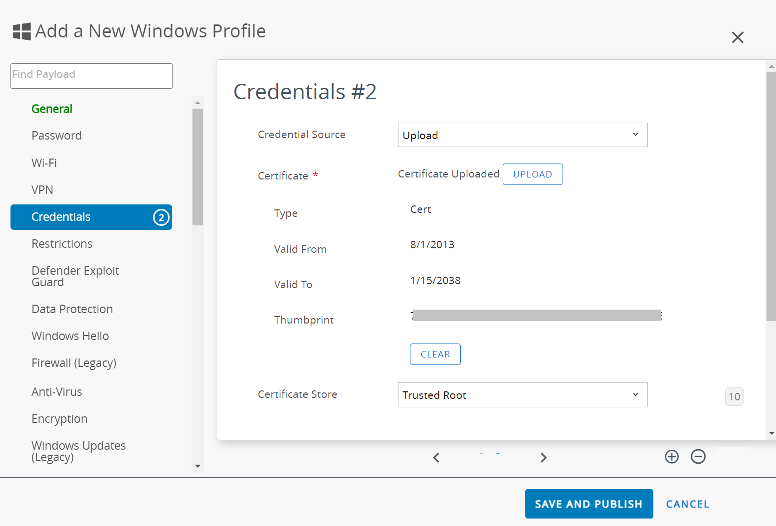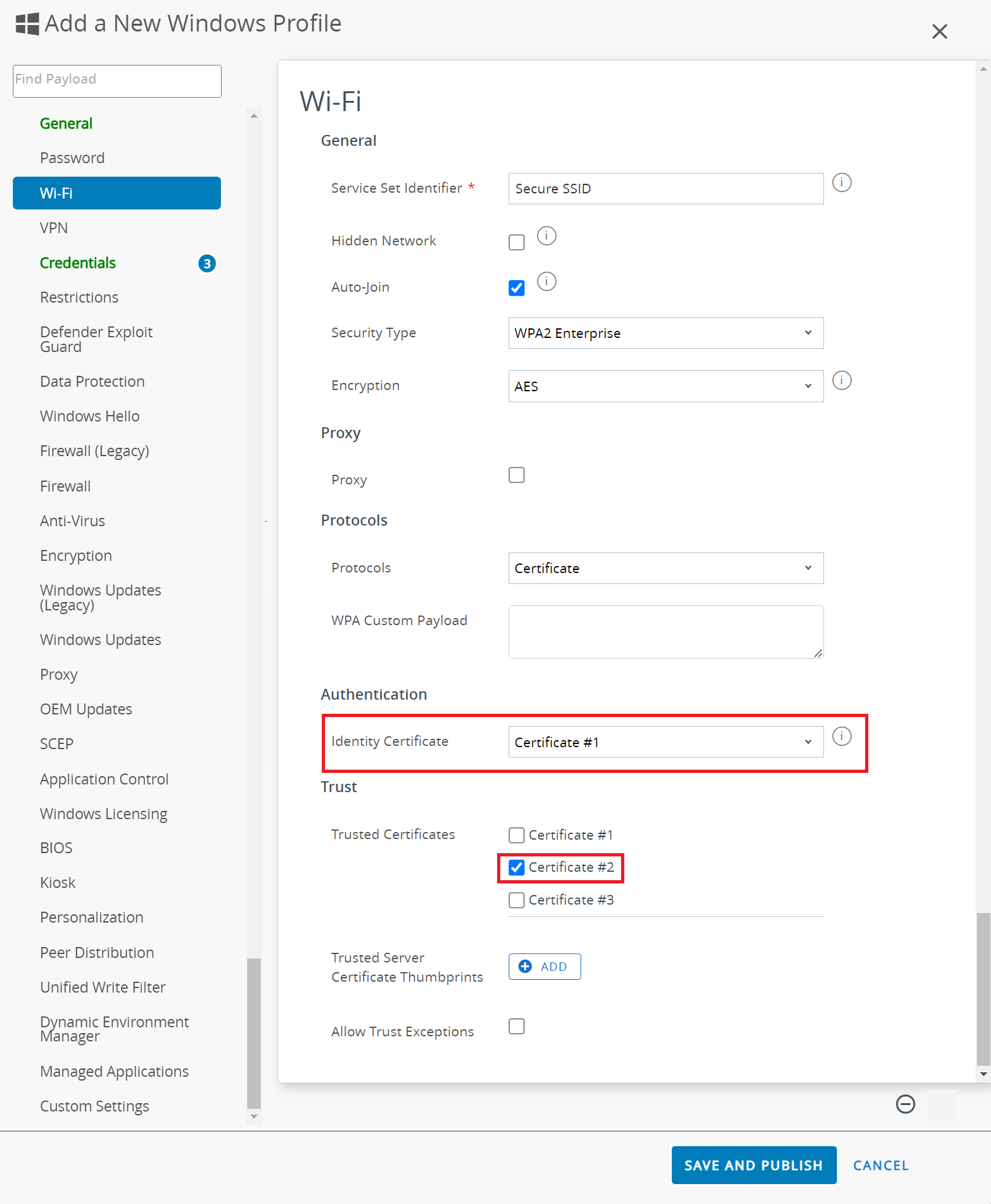 - In the Trusted Certificates list, select Certificate #2, created earlier in the h step.