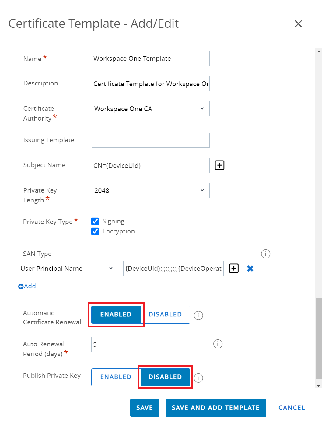 To create a Workspace ONE Certificate Template, perform the following steps: