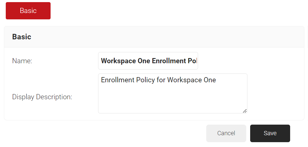 - In the Basic section, enter the name of the enrollment policy in the Name field.