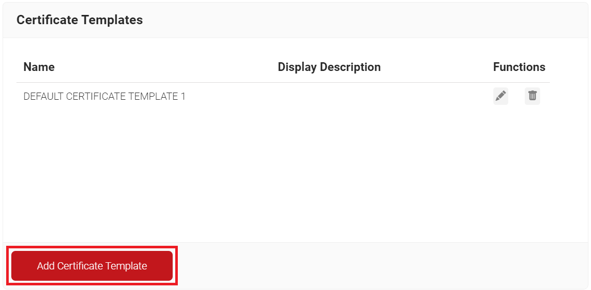 - Scroll to the Certificate Templates section and click Add Certificate Template.