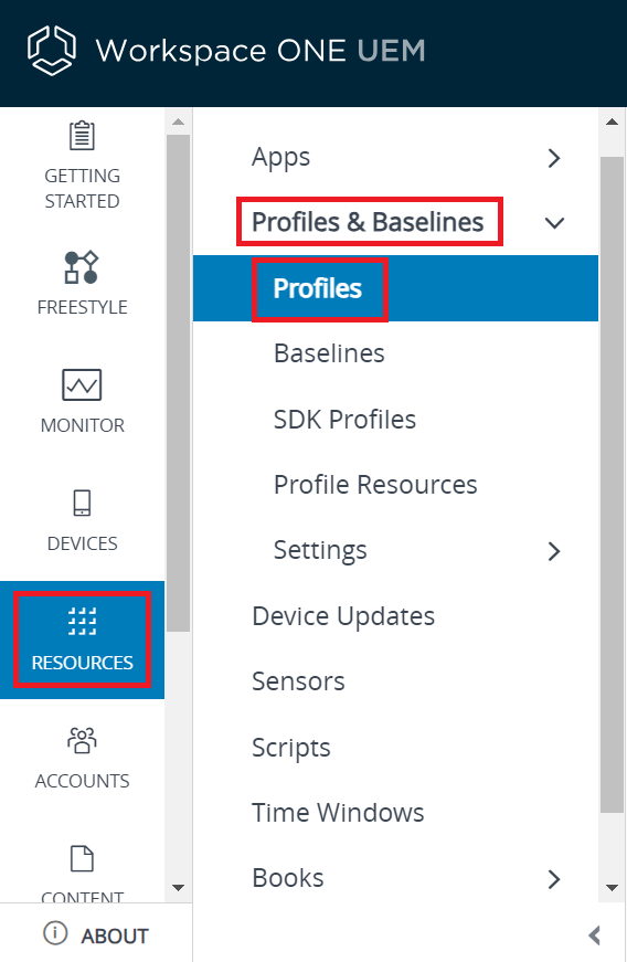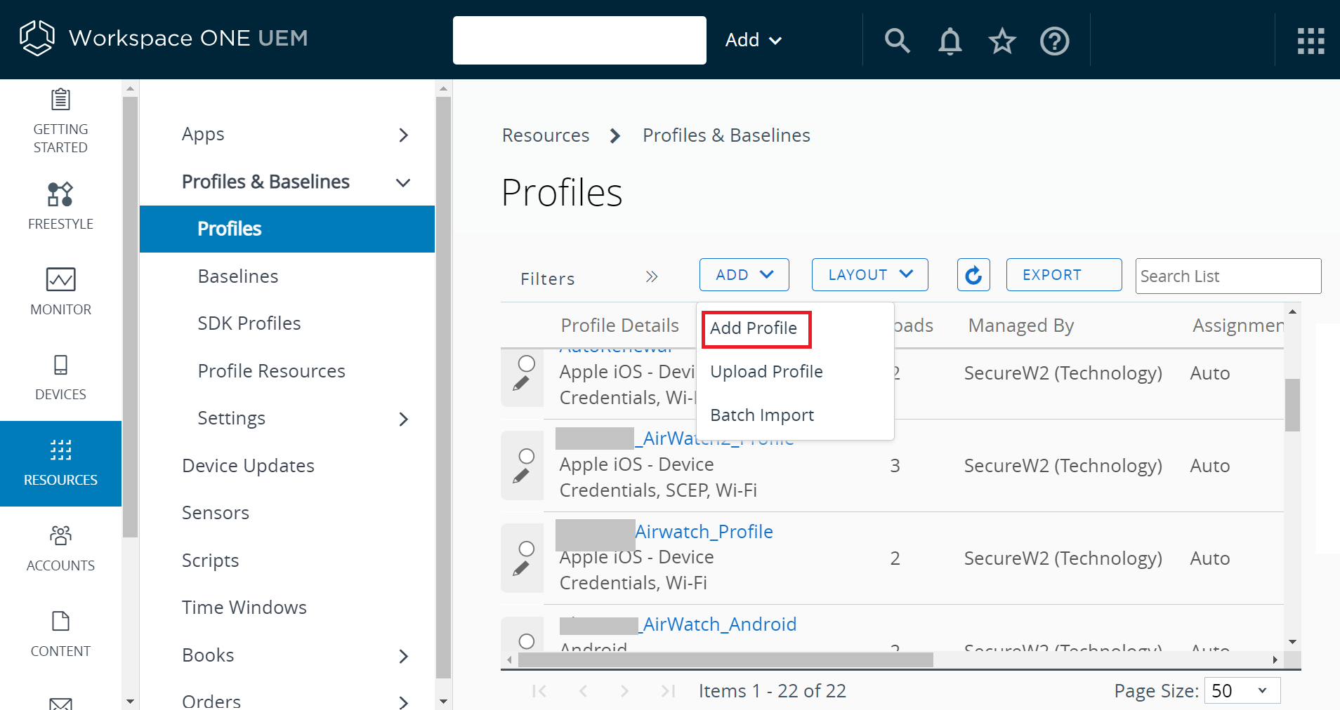 - Navigate to Resources > Profiles & Baselines > Profiles.