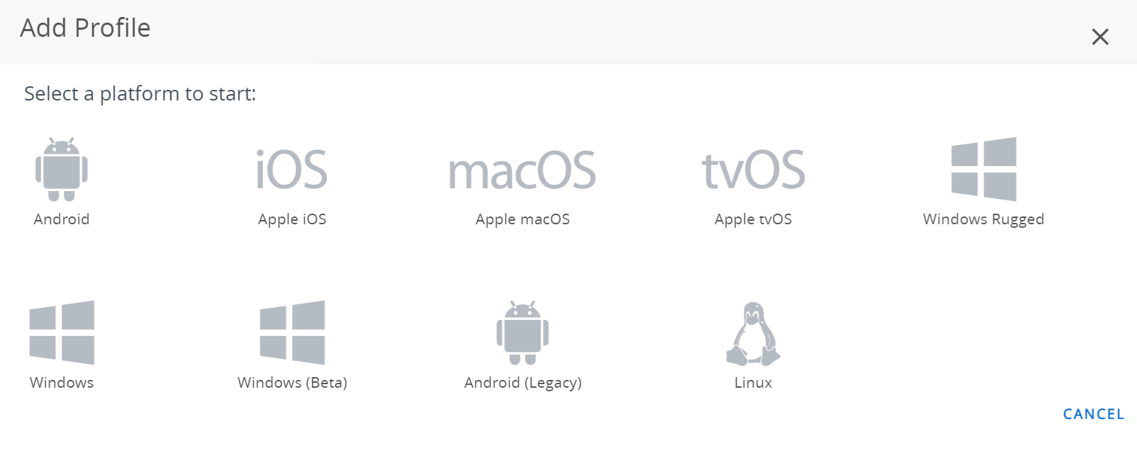 - On the Add Profile page, select an Operating System. For example, a profile for Windows is created.