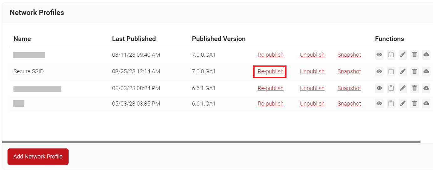 - On the Network Profile page, click the Re-publish link against your network profile.
