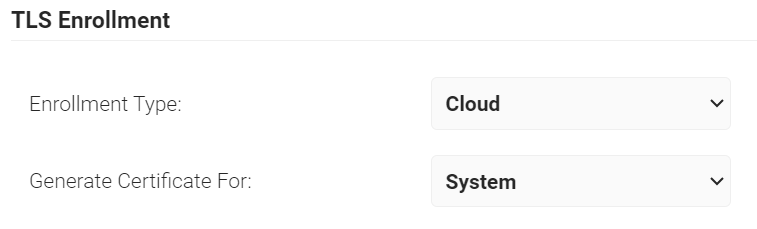 - In the TLS Enrollment section, from the Enrollment Type drop-down list, select Cloud.