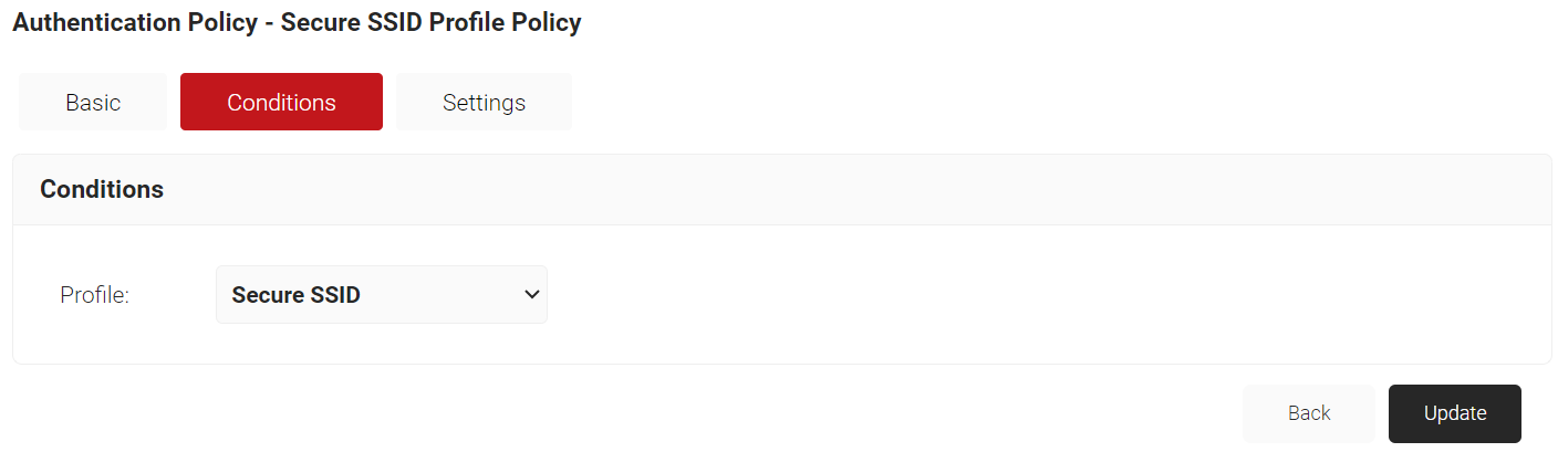 - Select the Conditions tab and make sure that your network profile is displayed in the Profile field.