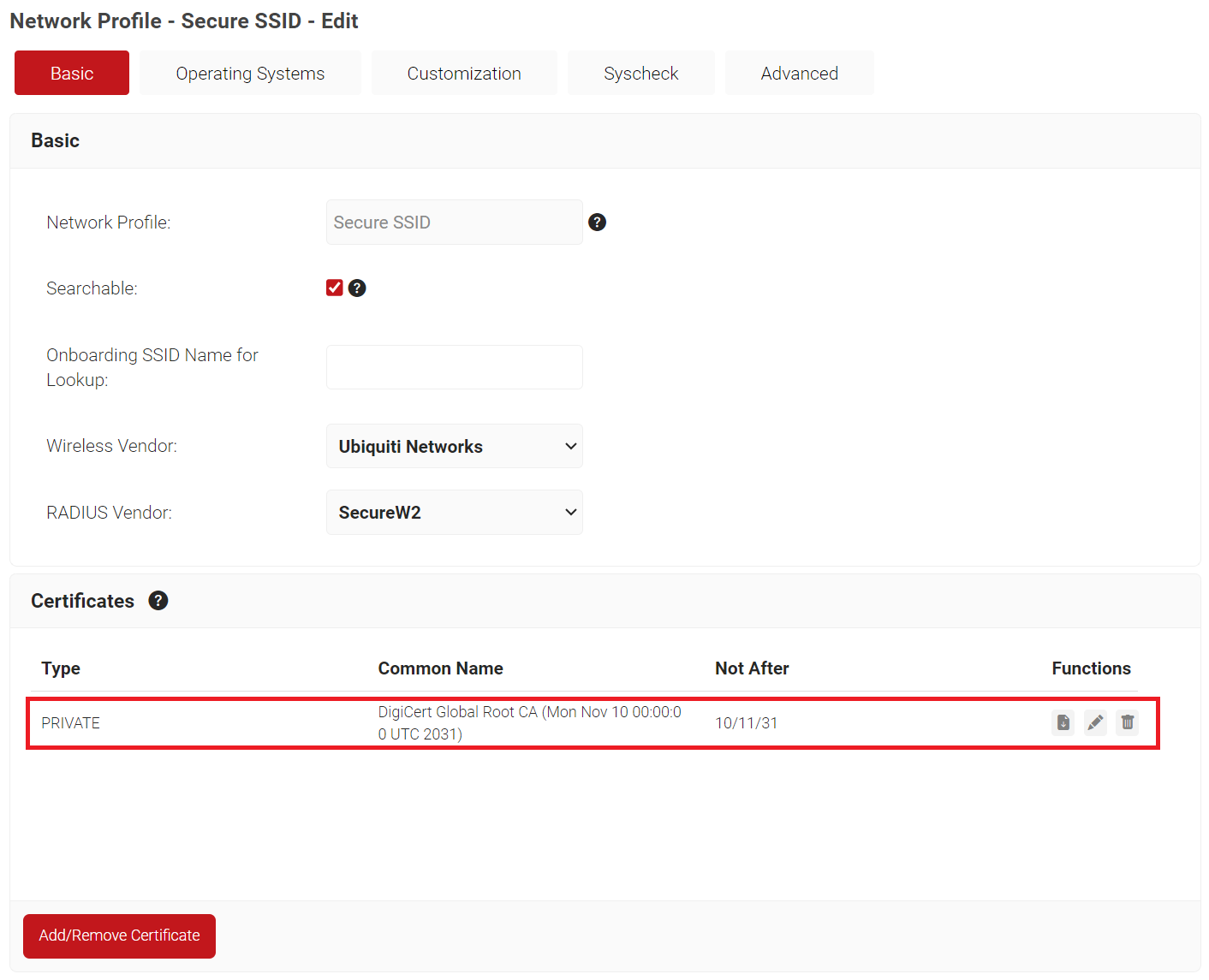 NOTE: For other RADIUS vendors, other than the SecureW2 RADIUS server, ensure that you have the Root or Intermediate CA that issues a RADIUS server certificate.