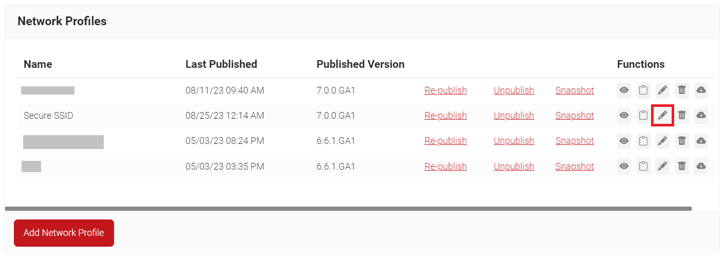 - On the Network Profiles page, click the Edit link of the network profile you created earlier (refer to the Create a Network Profile section).