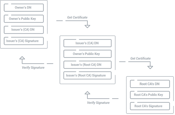 The order in which CAs issue these digital certificates is called a trust chain or certificate chain. This chain of trust verifies signatures against the issuing CA’s public key, linking entities to a trusted root CA.