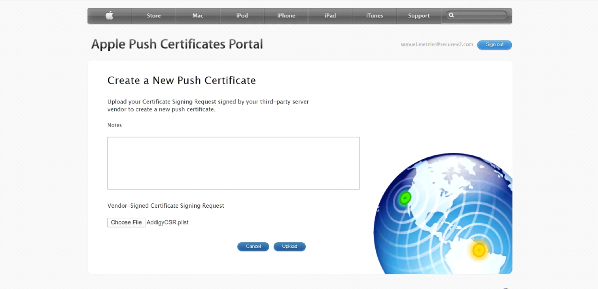 You have created an Apple Push Certificate with digital signatures for your managed devices. You must establish a secure connection so your managed devices can enroll for the certificate.