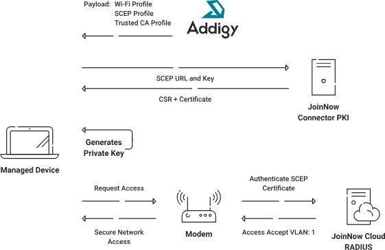 - After authentication, you can also push out a payload, allowing devices to enroll for a certificate with digital signatures.