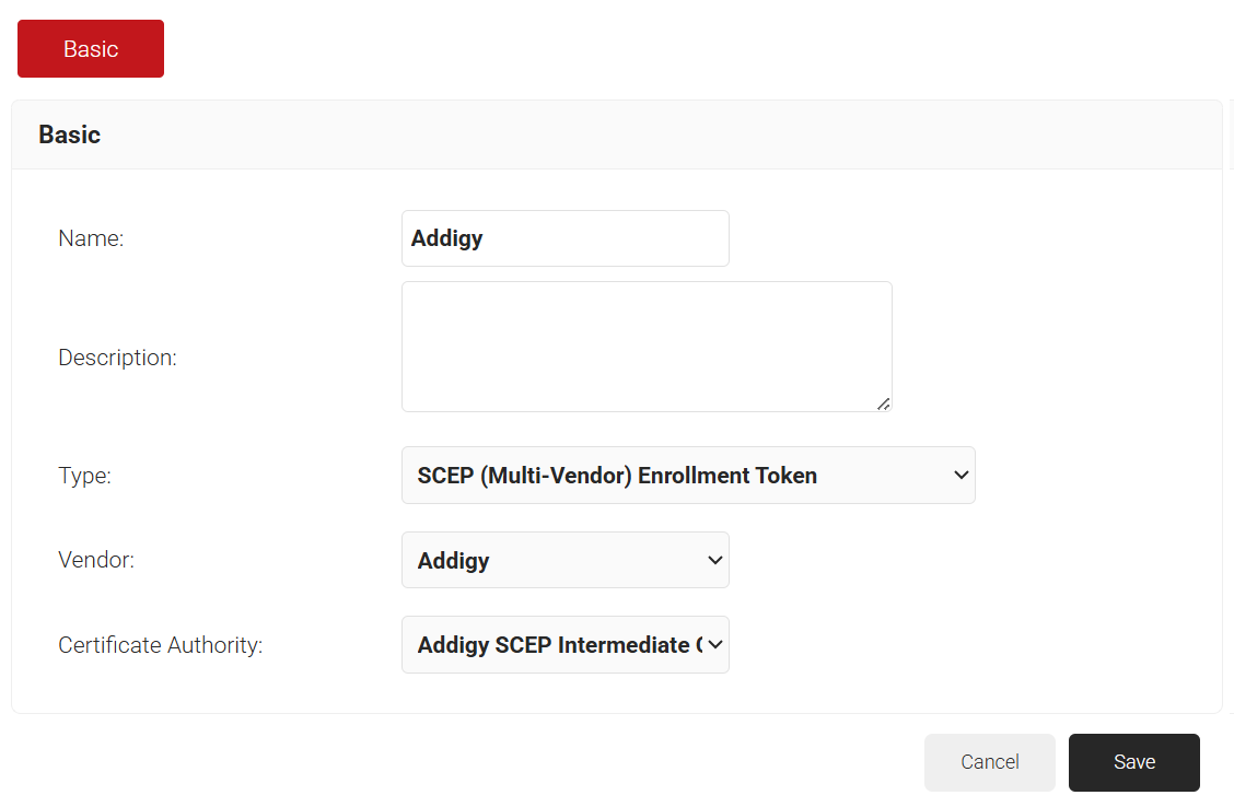 - From the Type drop-down list, select SCEP (Multi-Vendor) Enrollment Token.