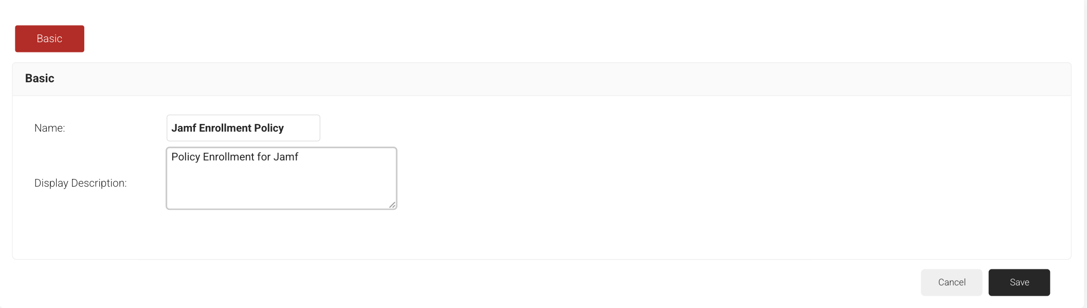 3. Under the Basic section, in the Name field, enter the name of the certificate template.