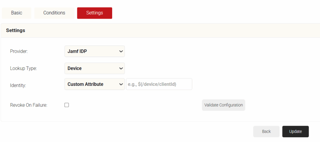 - From the Provider drop-down, select the Jamf Lookup IDP created in the previous step.