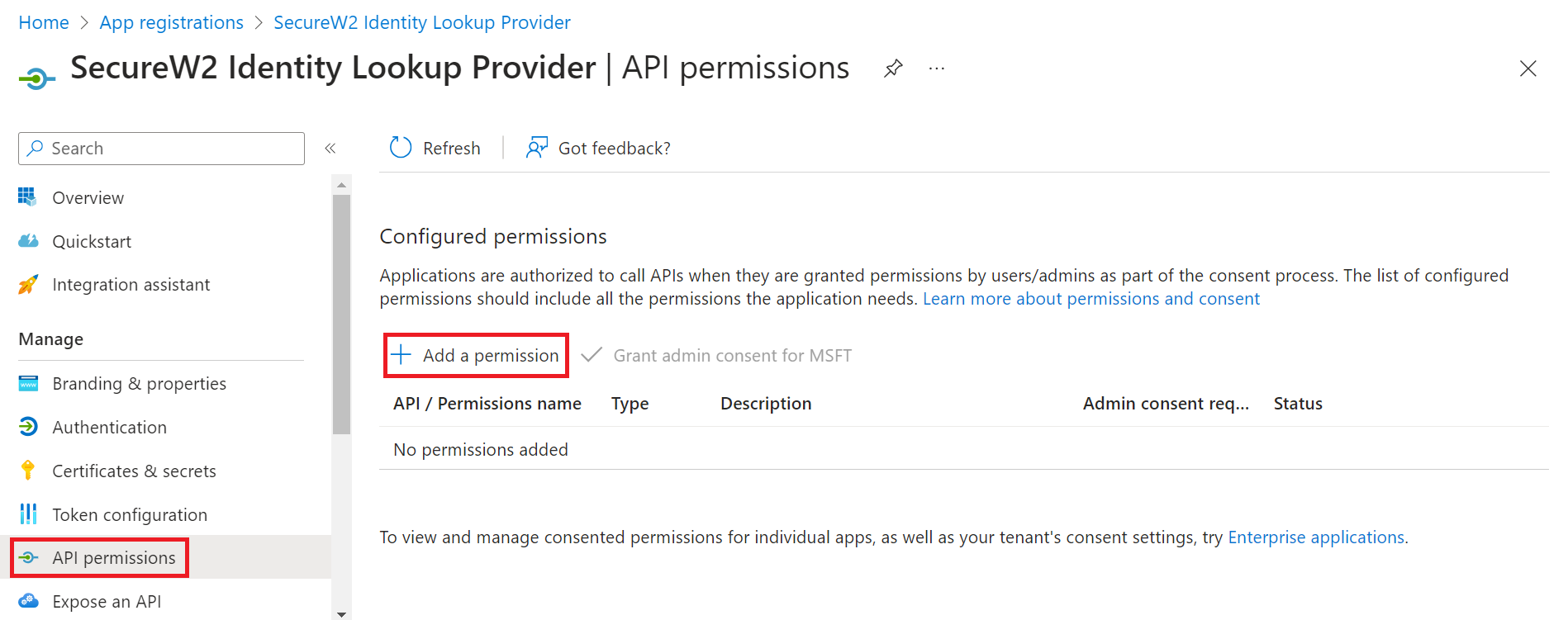 2. Click Add a permission.