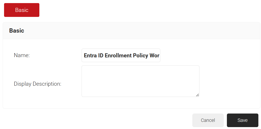 The first Policy Workflow to be created is for enrollment. JoinNow MultiOS will use this policy when the end users enroll themselves for certificates. MultiOS will not use the OAuth application you previously created in Azure. Instead, you need to use a separate SAML Application in Azure.