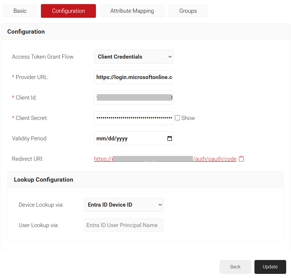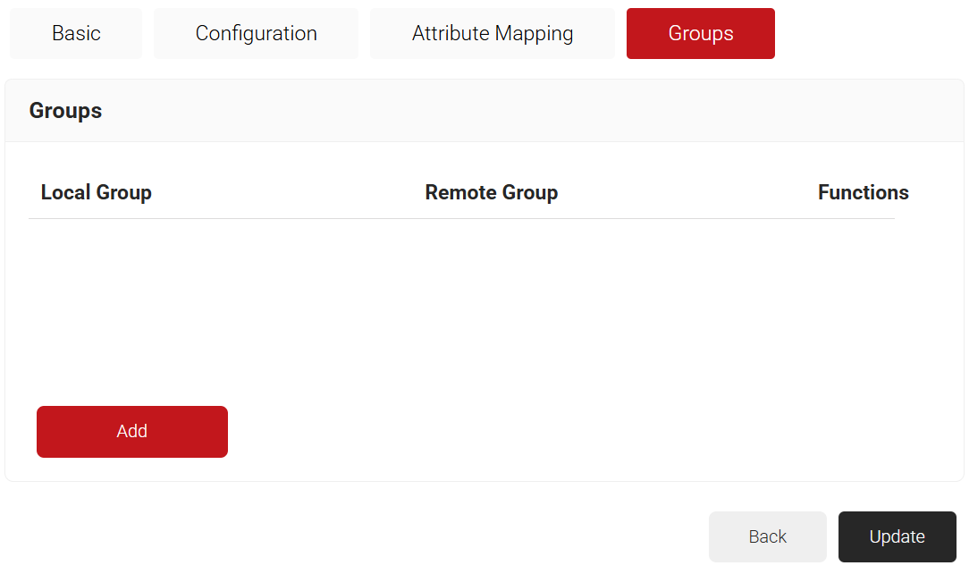 7. The page refreshes and displays the Configuration, Attribute Mapping, and Groups tabs.