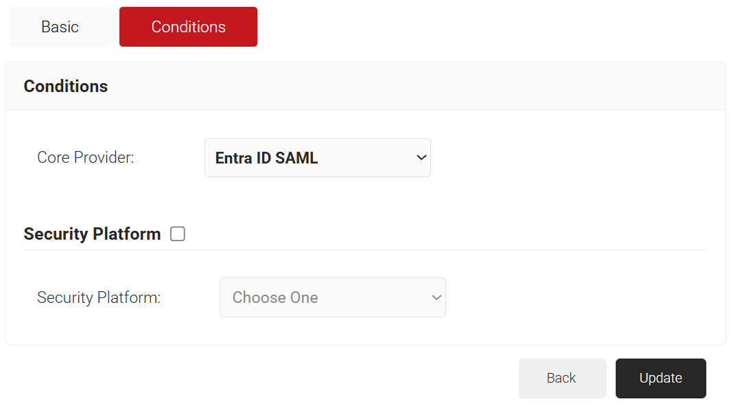 8. From the Core Provider drop-down list, select the Entra ID Signal Source created in the previous section (refer to the Creating an Entra ID Signal Source section).