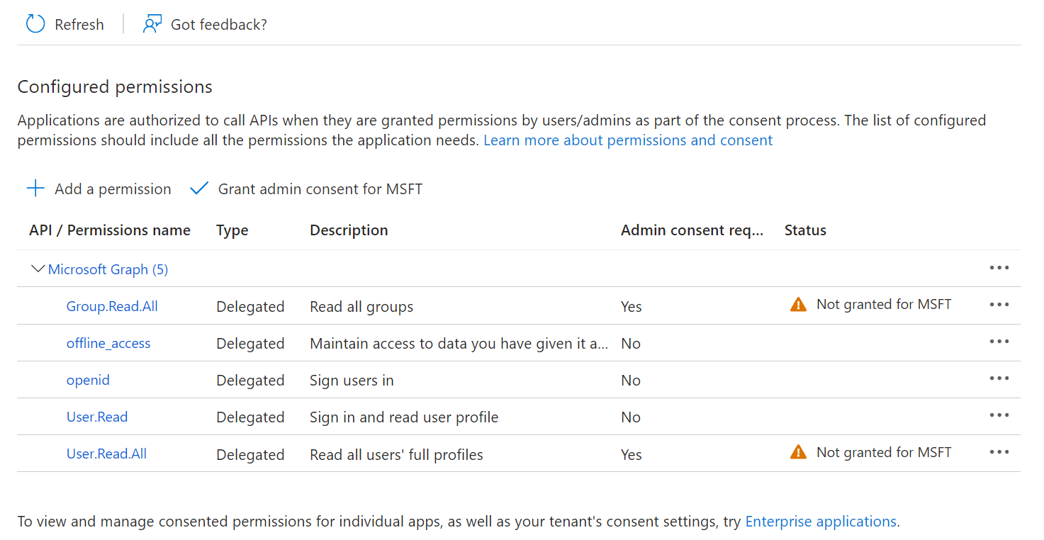 Finally, provide this application permission to access the data in our Entra ID.