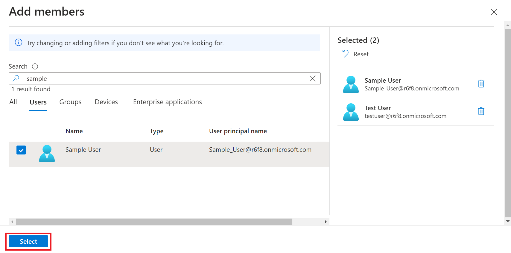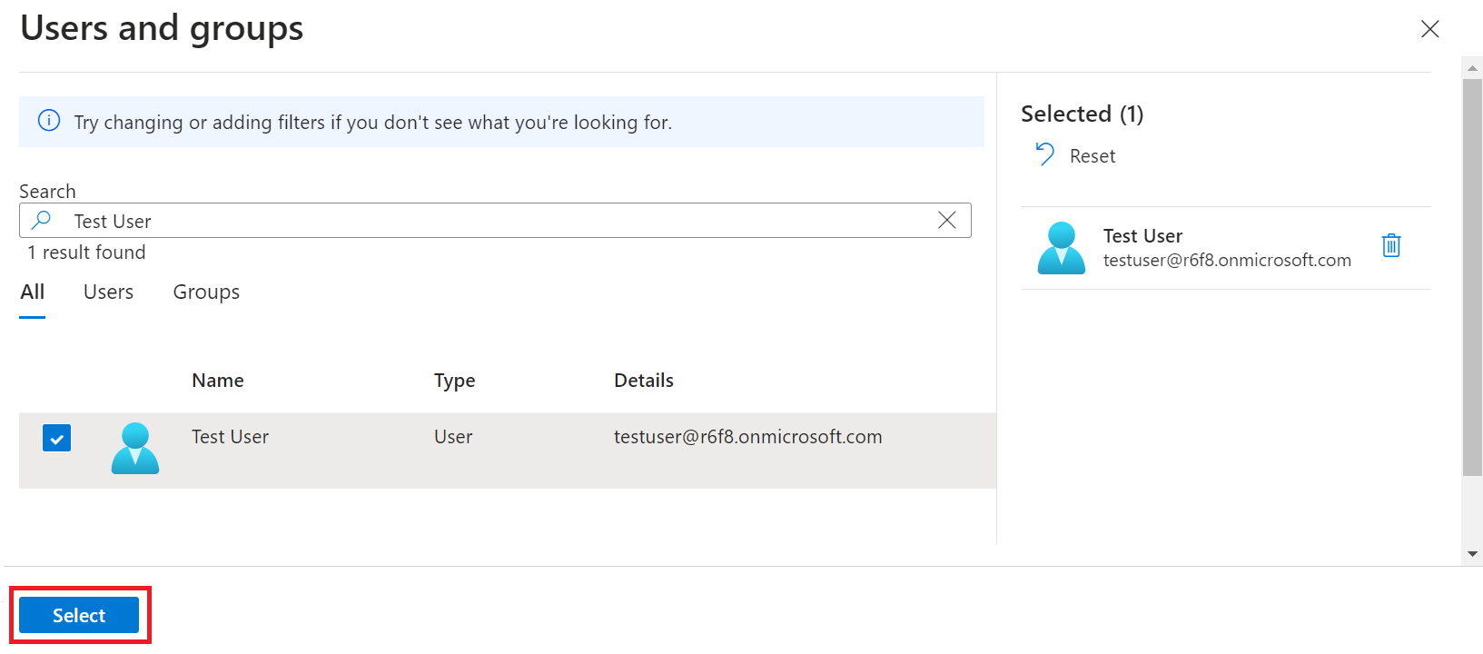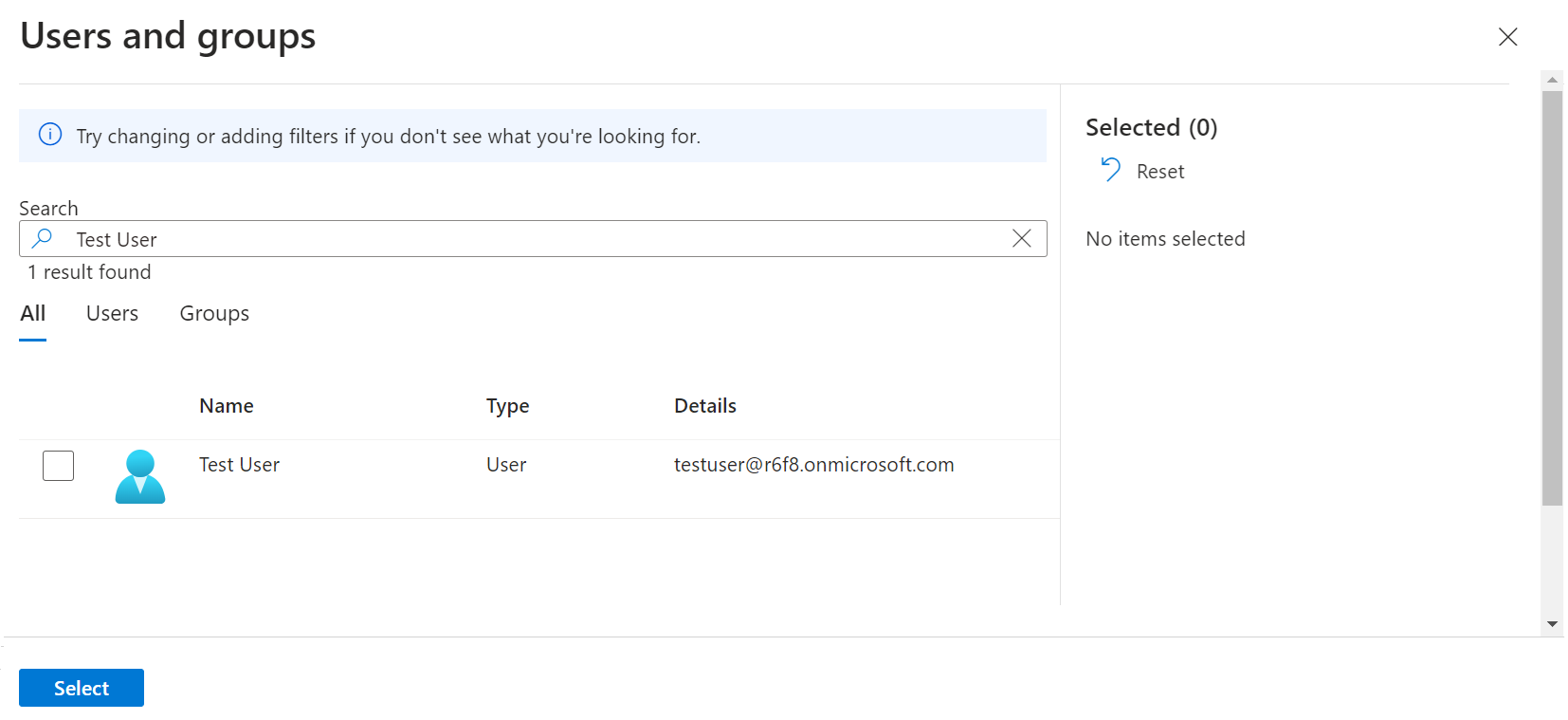 - Select the user, and then click Select.