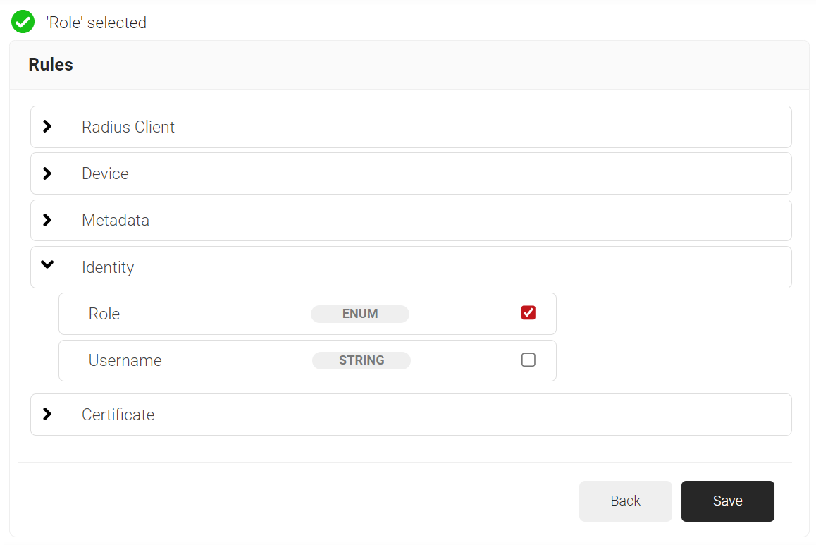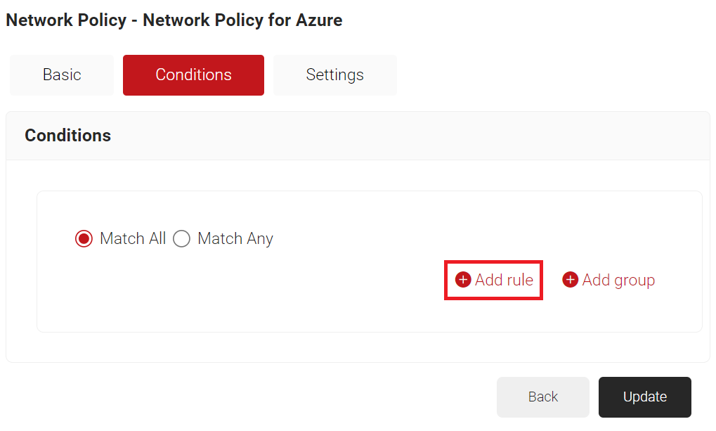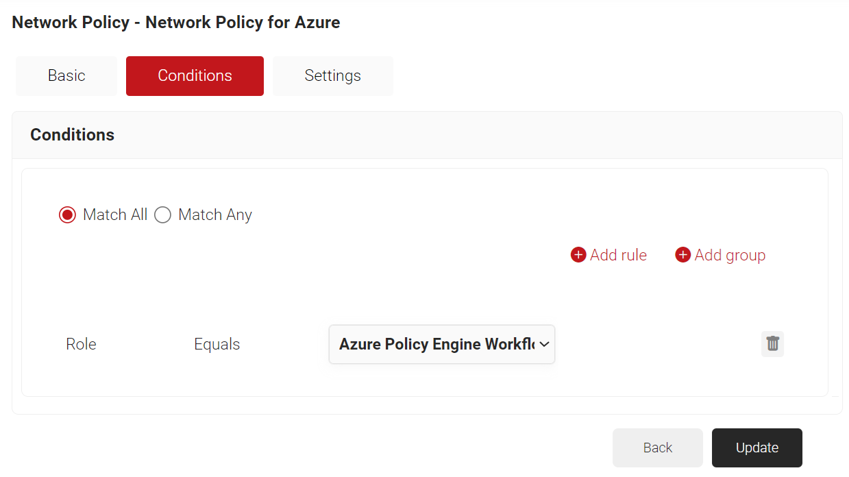 - Click Add rule and select the user role you want to assign to this network policy.