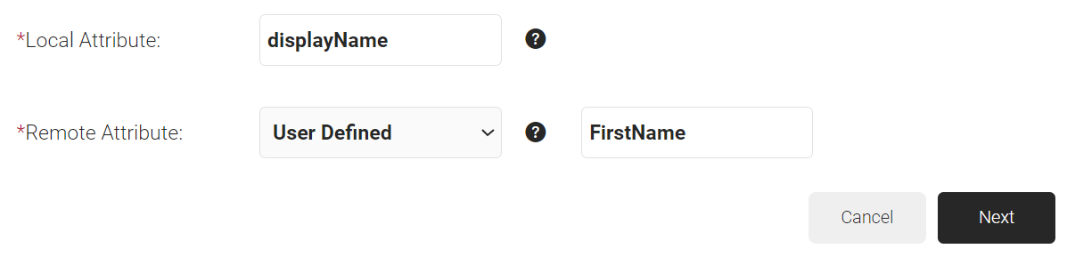 - In the Local Attribute field, enter a name for the attribute that corresponds with the Remote Attribute. This is used during Policy Configuration.