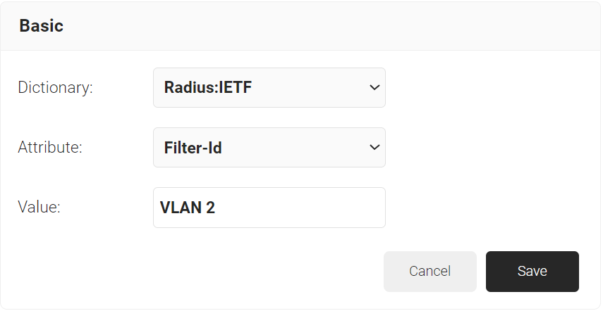 b. From the Dictionary drop-down list, select an option: Radius: IETF or Custom.