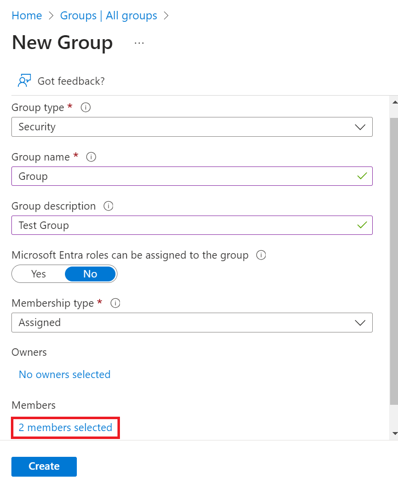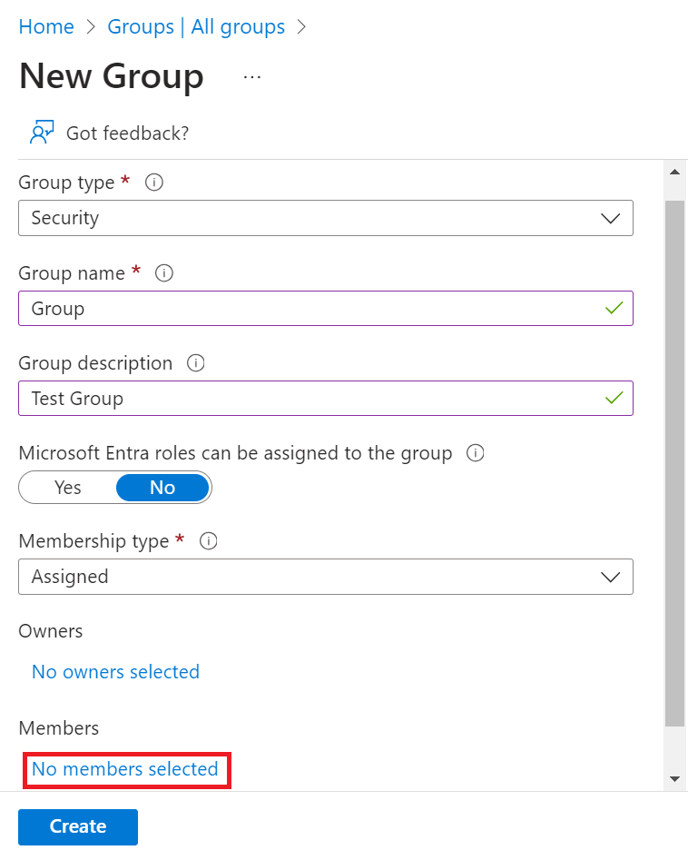 v. In the Members field, click No members selected.