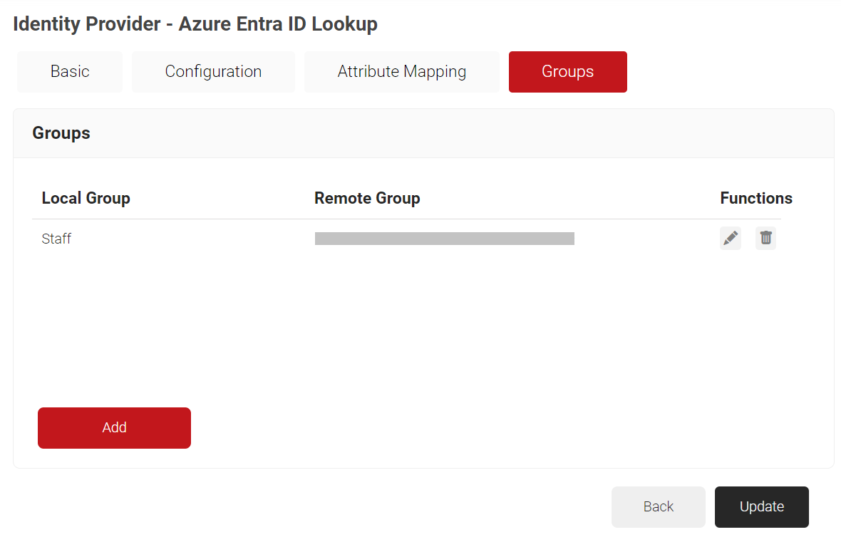 ii. In the Remote Group field, paste the Object ID value obtained from the Adding Users to the SAML Application (step 9) section.