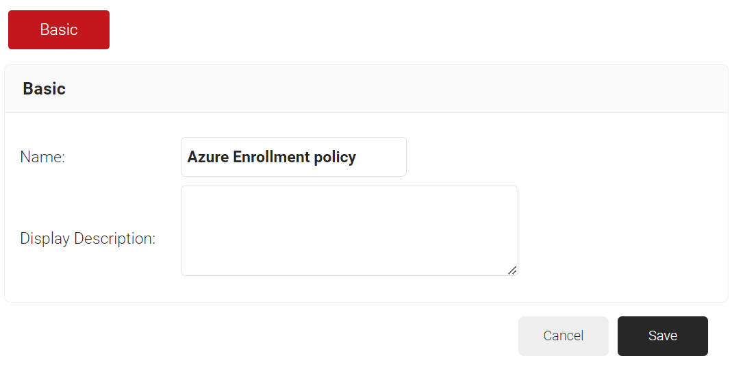 - In the Basic section, enter the name of the enrollment policy in the Name field.