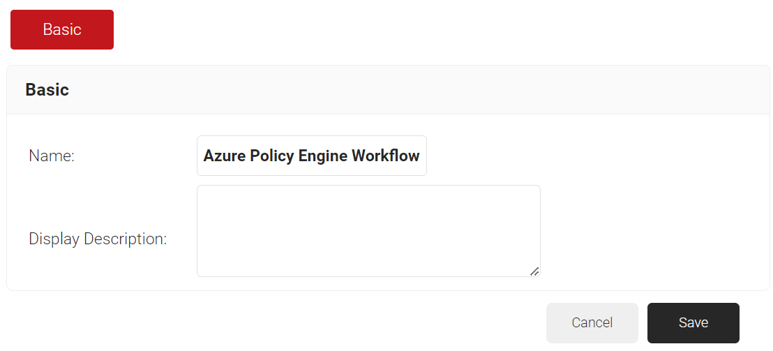 - In the Basic section, enter the name of the policy engine workflow in the Name field.