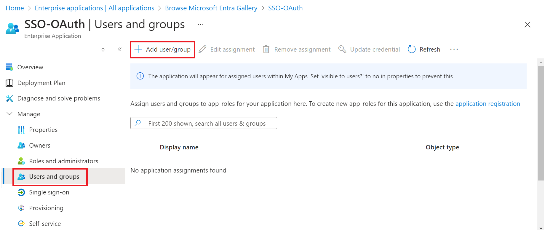 To add users to the SAML application in Microsoft Azure, perform the following steps: