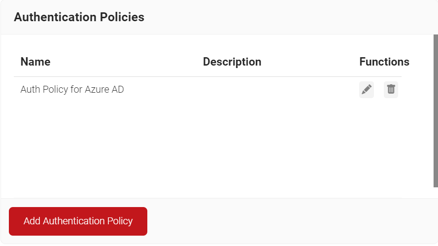 An Authentication Policy can be created from the Authentication page. If you’ve already set up an authentication policy through Getting Started, you can either edit it with the required values or create a new one.