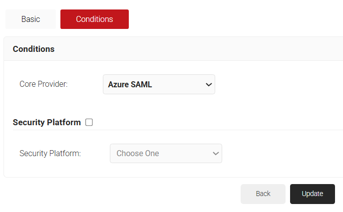 - From the Core Provider drop-down list, select the IDP that you created earlier (refer to the Creating a Core Platform in SecureW2 section).