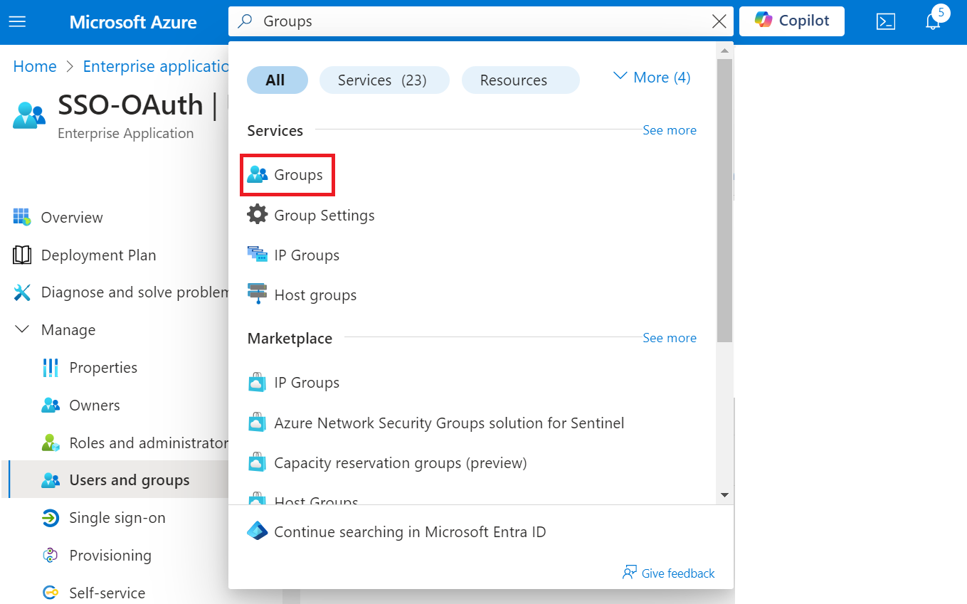 a. Type “Groups” in the search box and click Groups.