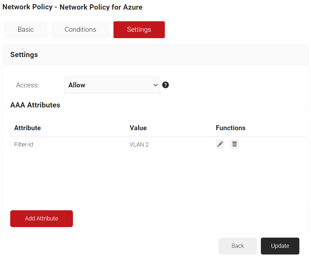 NOTE: You can assign a network policy to multiple user roles. - Click the Settings tab.