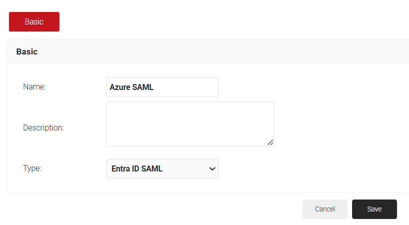- In the Basic section, enter the name of the IDP in the Name field.