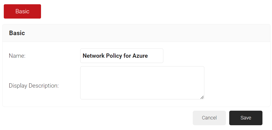 - Under the Basic section, in the Name field, enter the name of the network policy.