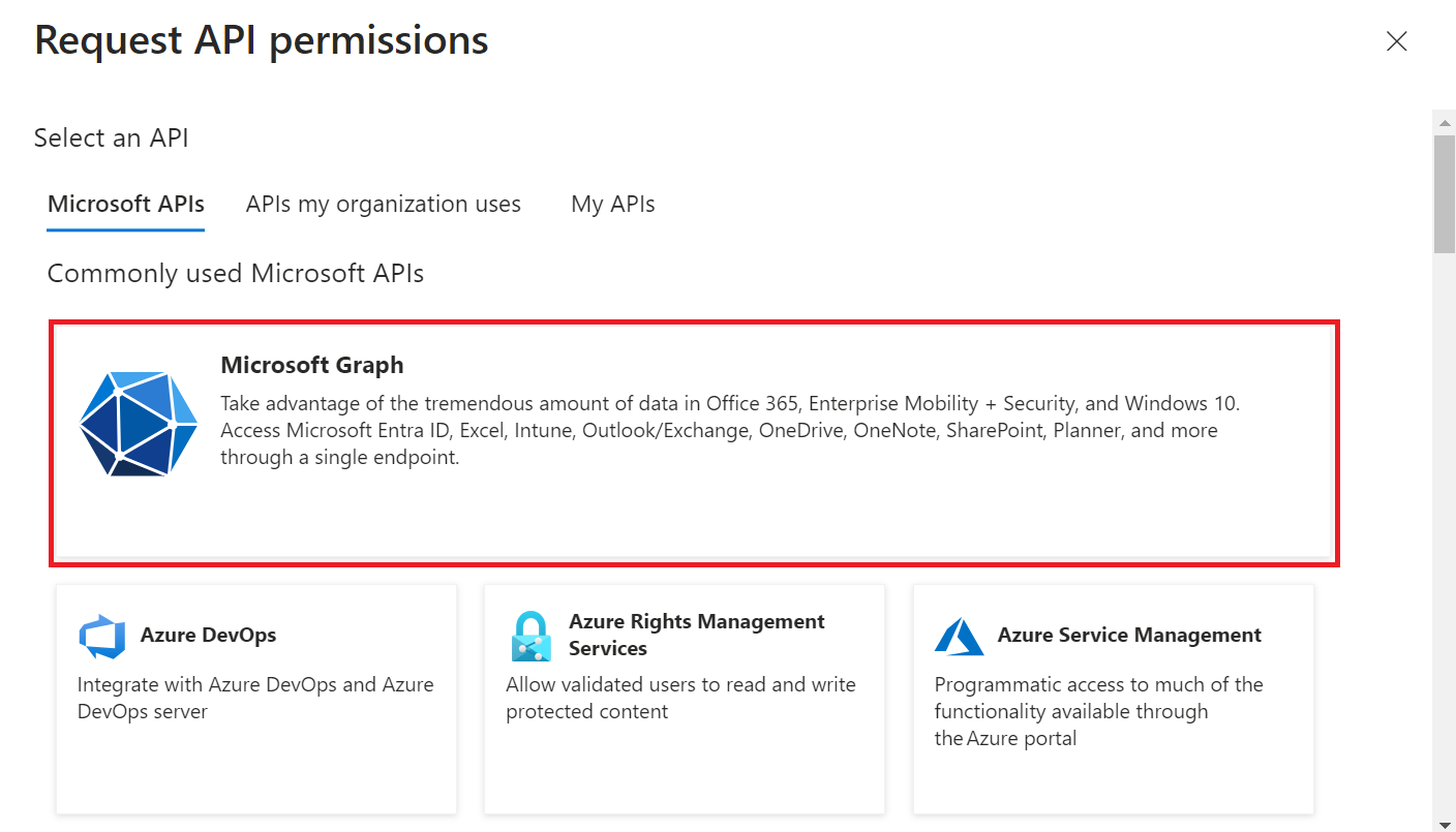 - Select Microsoft Graph.