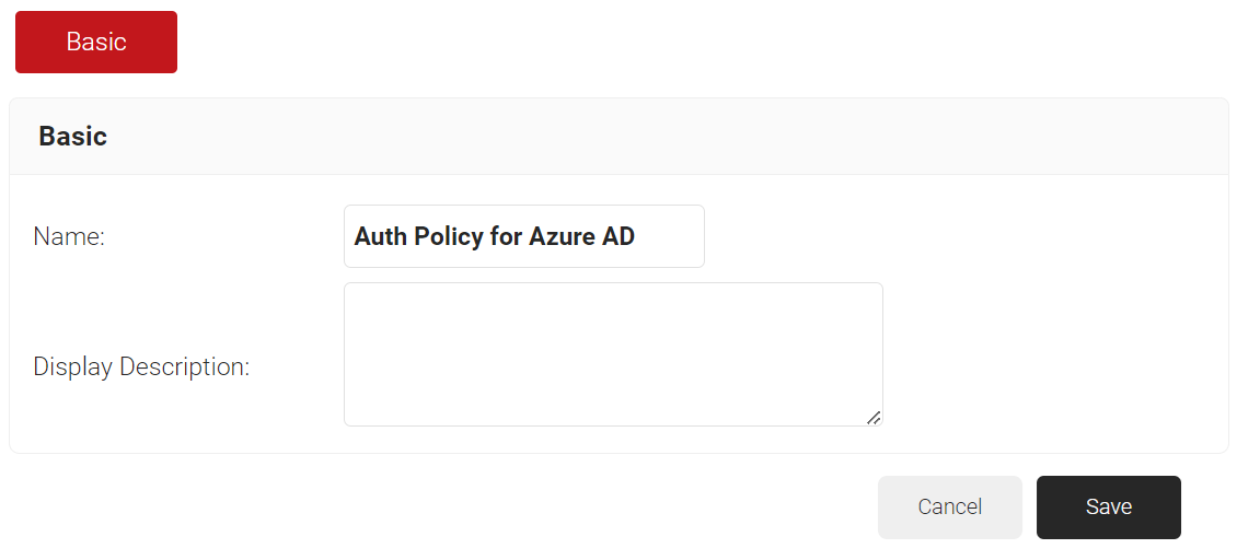 - In the Basic section, enter the name of the Authentication Policy in the Name field.