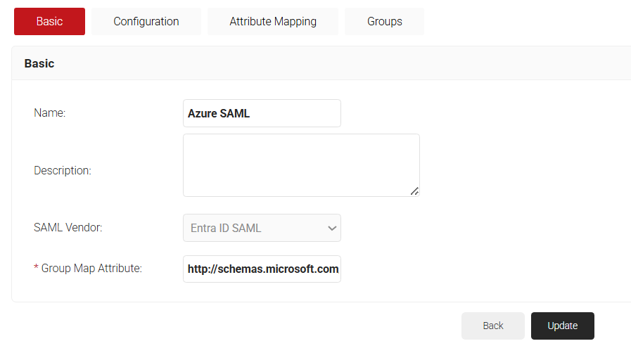 - To map a group from the Azure Active Directory to the JoinNow Management Portal, follow these steps:a. Select the Basic tab.b. In the Group Map Attribute field, enter