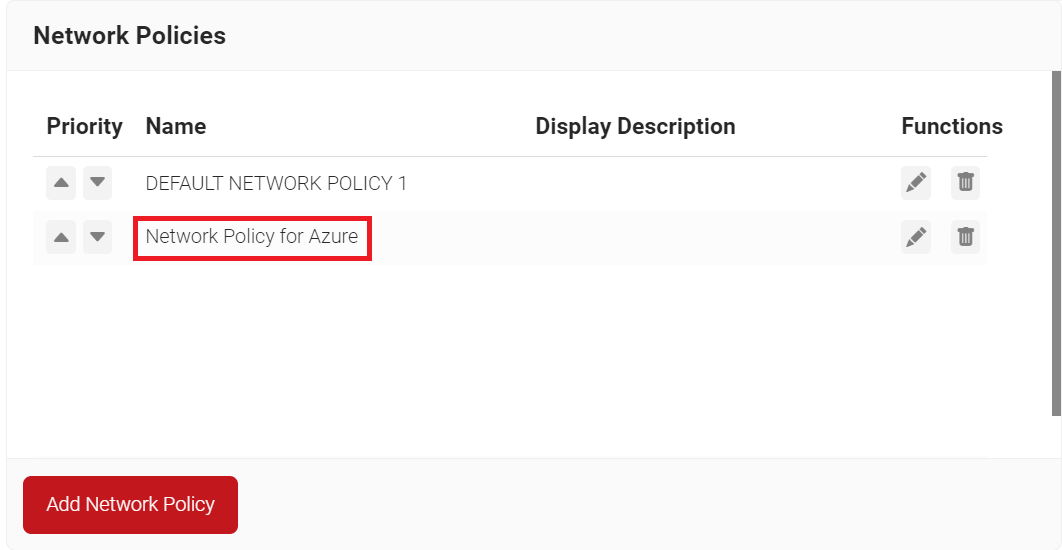 - On the Network page, click Add Network Policy.