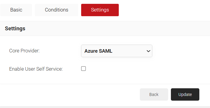 - From the Core Provider drop-down list, select the IDP you created earlier (refer to the Creating an Core Provider in SecureW2 section).