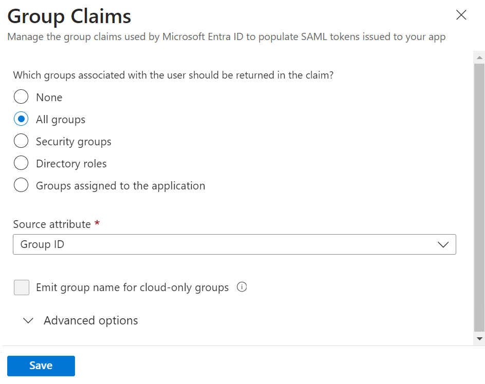 To configure group mappings for SAML using Azure Active Directory, perform the following steps: