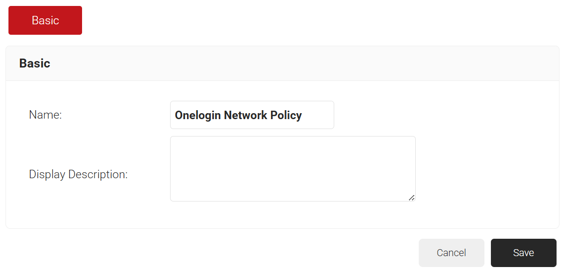 - On the displayed page, enter the name and description of the Network policy and click Save.