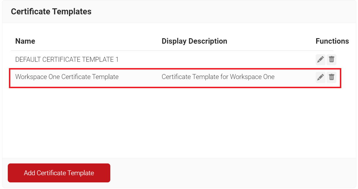 - Scroll to the Certificate Templates section and click Add Certificate Template.
